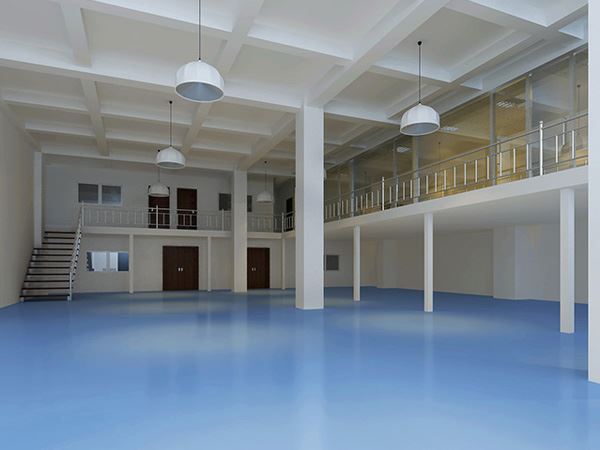 2、底涂層——使用水性環氧底漆主漆和固化劑按1:0.15比例混合攪拌均勻,用滾筒均勻地滾涂,門邊、墻角、墻腳、機腳等使用毛刷刷涂。